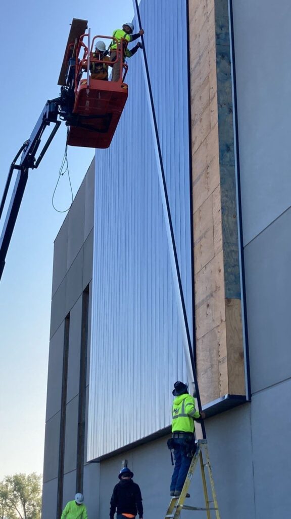 The installation process for the siding at the Abbott Drive project was meticulously planned and executed to ensure optimal results. Our skilled team utilized high-strength magnets for safe handling and precise placement of the metal panels, which significantly streamlined the installation process.