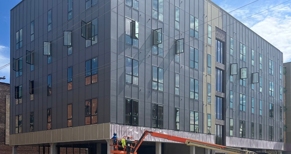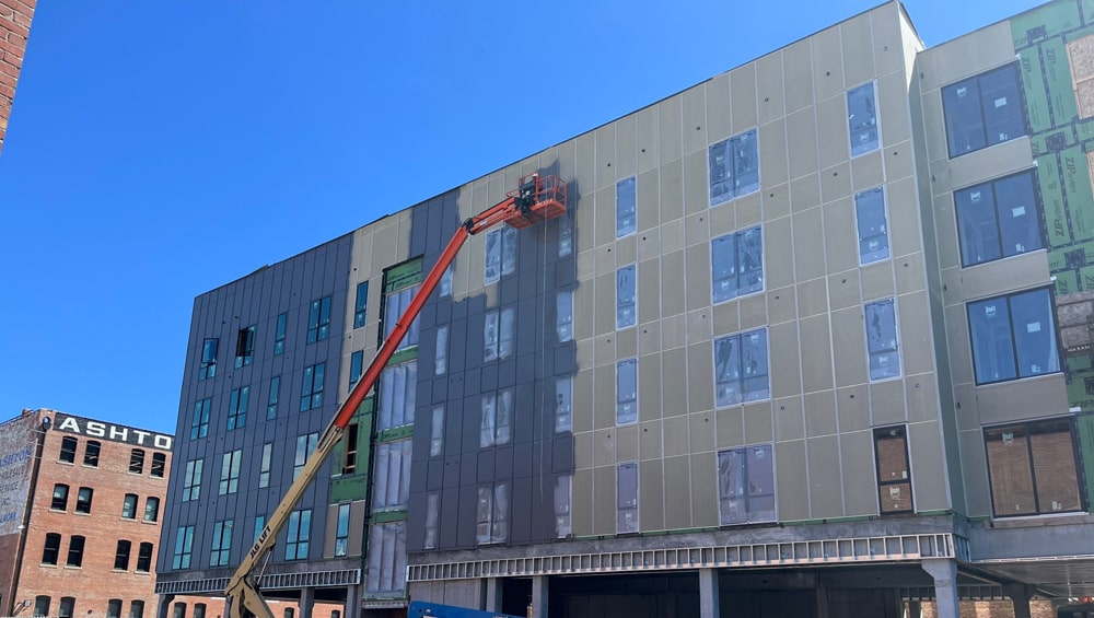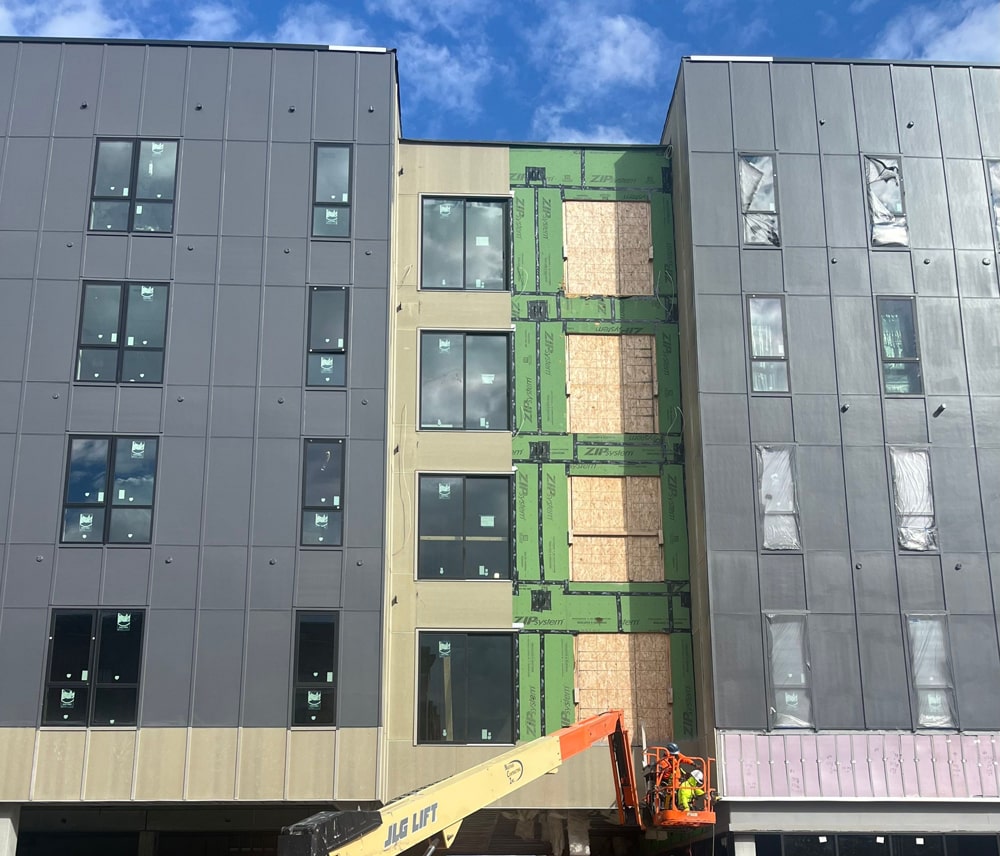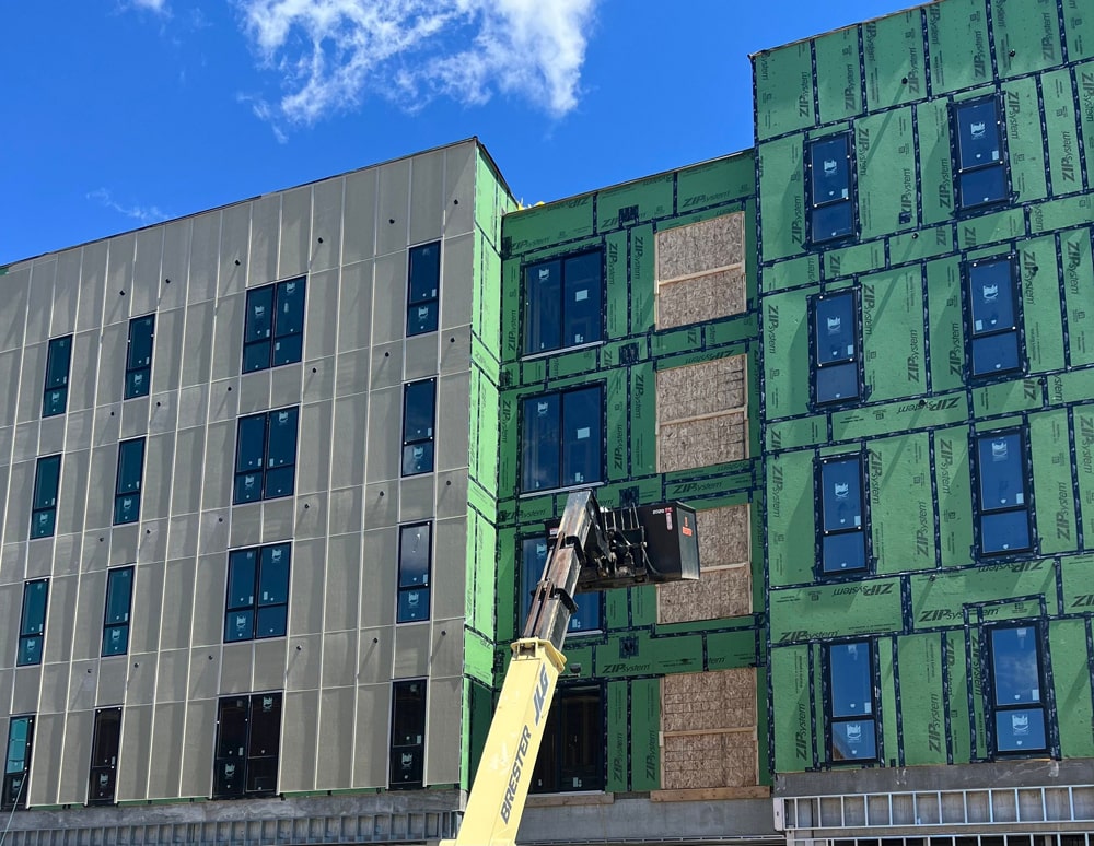 The Dizzy Mule project exemplifies our capability in handling multifamily developments. Located in a prime area of Downtown Omaha, this project highlights our proficiency in installing advanced exterior wall systems that enhance both functionality and visual appeal.